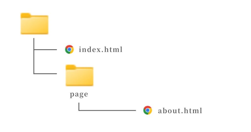 例えば、以下の図のような階層になっている場合、index.htmlから見たabout.htmlは「page/about.html」です。